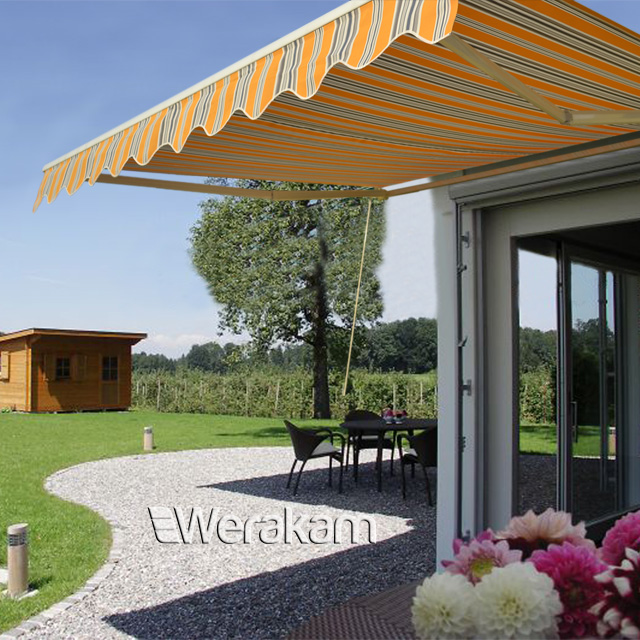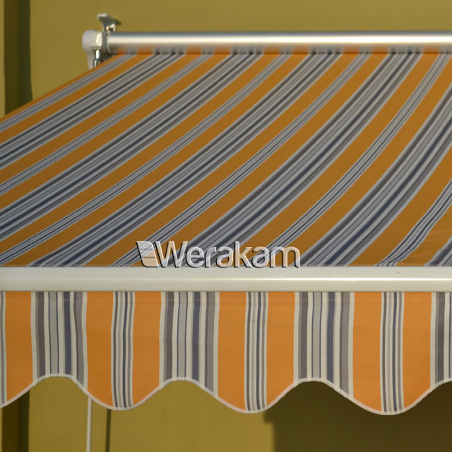 Dzięki nowoczesnym systemom mechanicznym sterowanie ręczne jest bardzo proste i nie wymaga większego wysiłku. Te piękne, kolorowe zasłony zapewniają nie tylko ochronę przed słońcem, deszczem i upałem. Rozjaśniają i ozdabiają nasze domy, ożywiają elewacje, a przede wszystkim sprzyjają wypoczynkowi i wprawiają w wakacyjny nastrój. Dzięki estetyce markizy są doskonałym elementem upiększającym i reklamowym. Zestaw zawiera cały komplet: markiza, korba, instrukcja oraz akcesoria niezbędne do montażu Dane techniczne: Kolor : SUNNY Długość markizy: 400cm Wysięg: do 250cm (regulowany) Maksymalny kąt nachylenia: do 40 stopni Materiał: 100% poliester Gramatura materiału: 280g/m2 Tkanina nieprzemakalna Mocna konstrukcja aluminiowa w kolorze białym (malowana proszkowo). Możliwość montażu ściennego lub sufitowego (możliwość zamontowania również bezpośrednio do krokwi) Sterowanie mechaniczne korbą Poziomica ułatwiająca montaż
